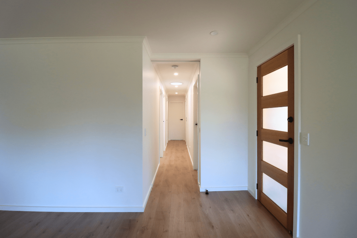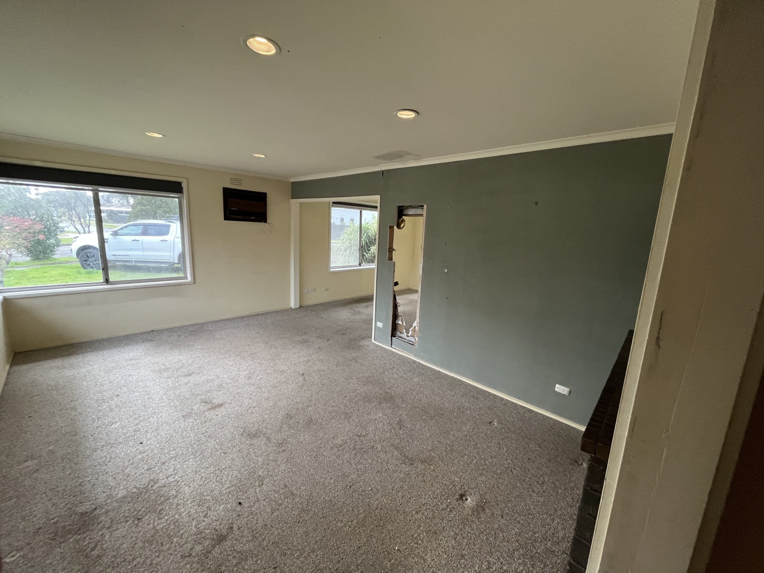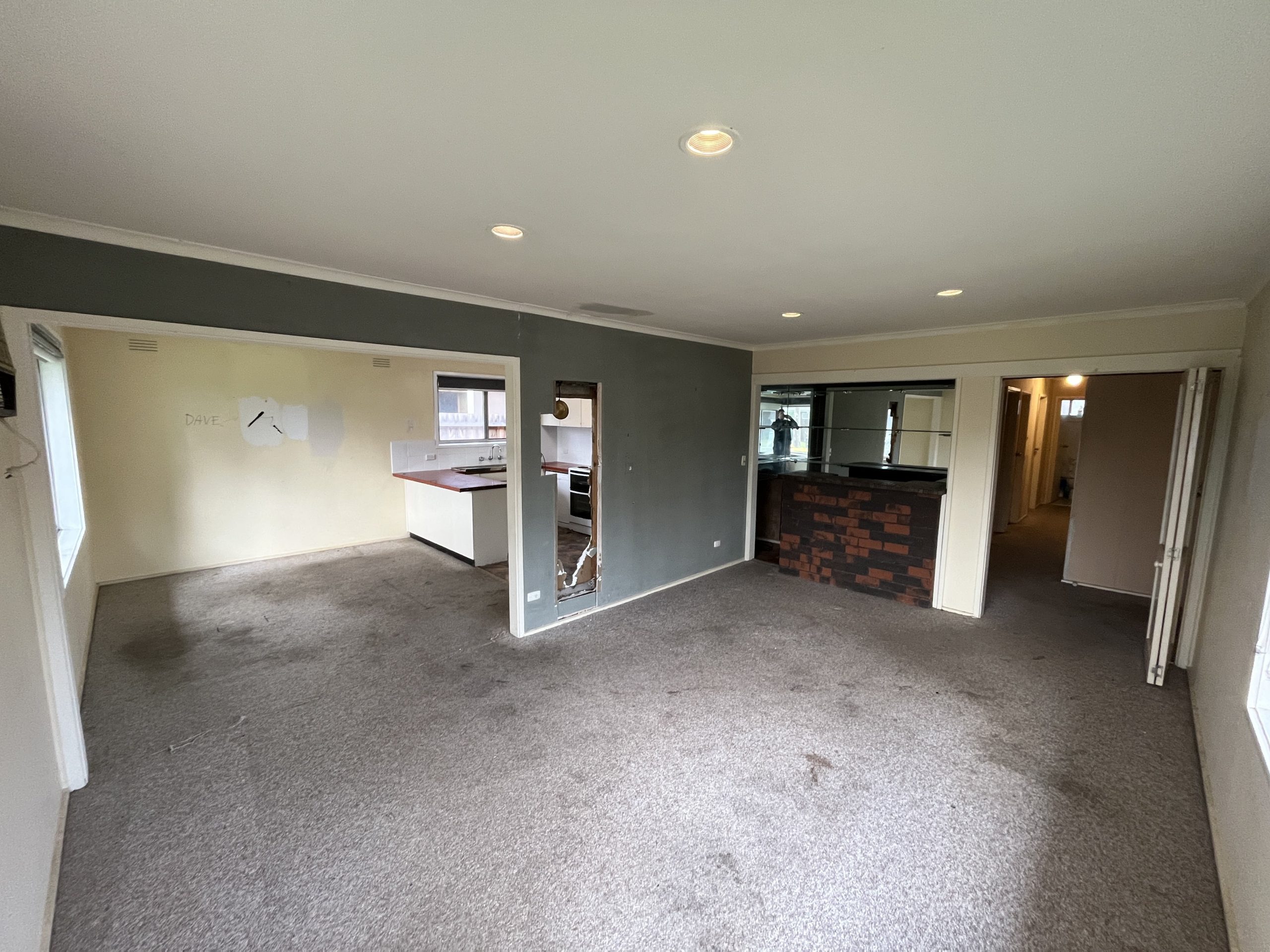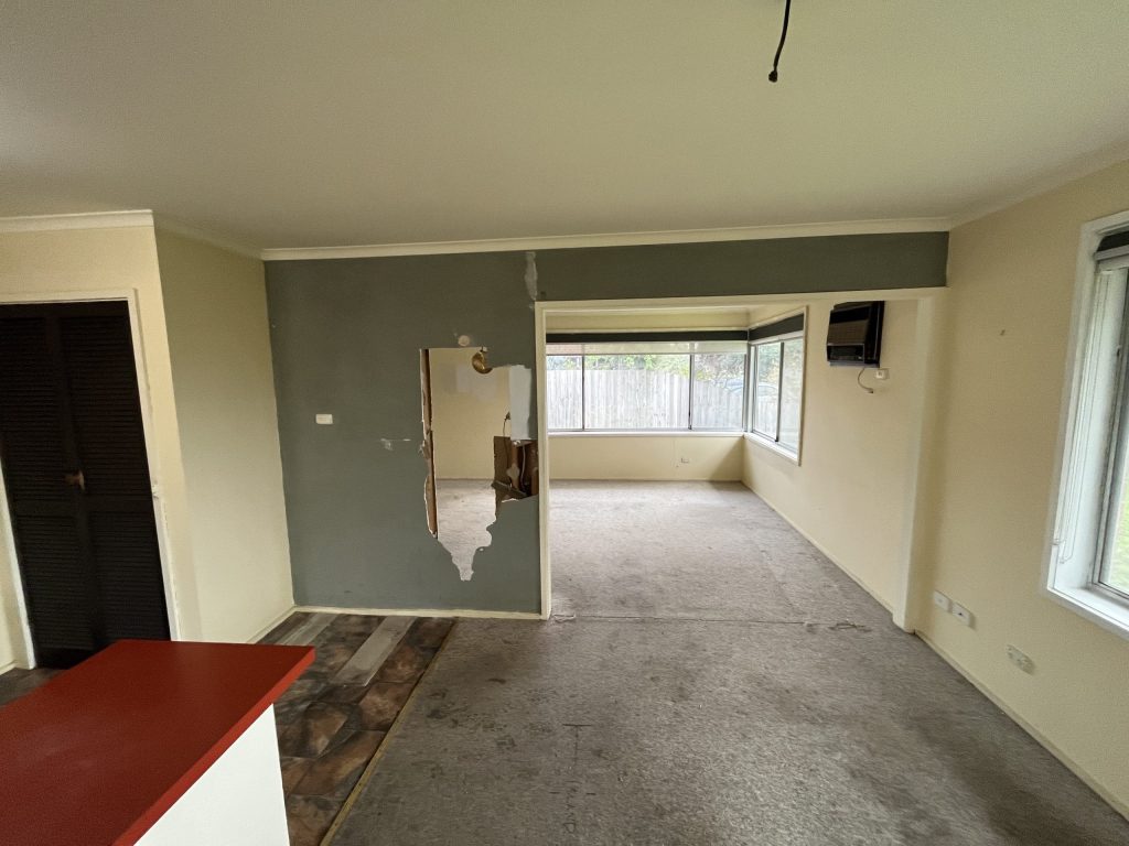 Room size following the renovation is approx. 7m x 7m with a ceiling height of 2.4m. Timber stud walls and timber subfloor.